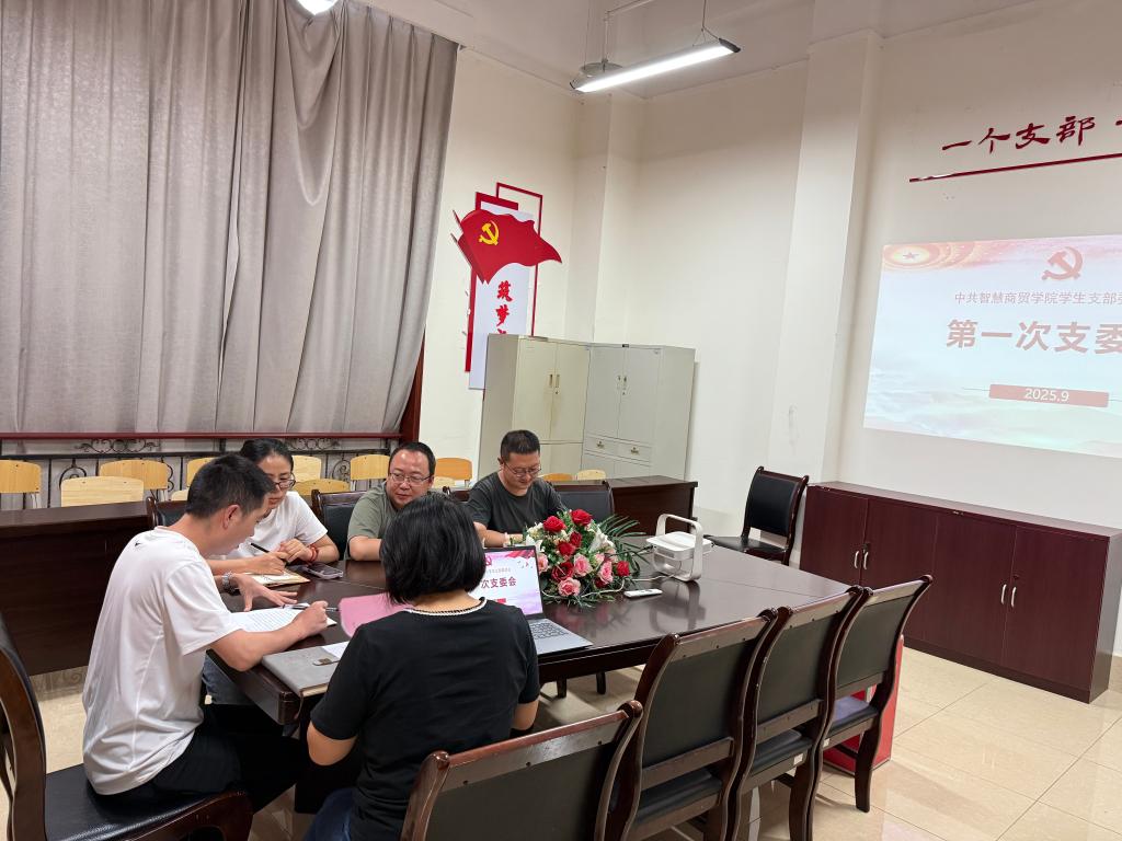 2025年9月12日,智慧商贸学院学生党支部召开9月支委会,就学生党支部书记候选人开展讨论,并学习了《习近平:凝聚上合力量完善全球治理》、《习近平:在全国生态环境保护大会上的讲话》、求是文章《习近平:坚定不移推进高水平开放》、《习近平致全国青联十四届全委会和全国学联二十八大的贺信》、《习近平:团结奋斗是中国人民创造历史伟业的必由之路》、。会议由组织委员王乾慷主持,全体委员参加会议。