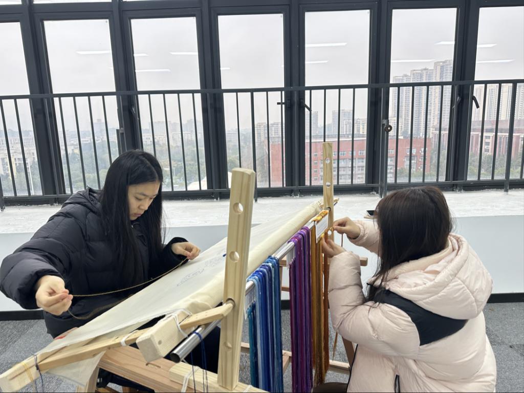 学生在练习非遗技术