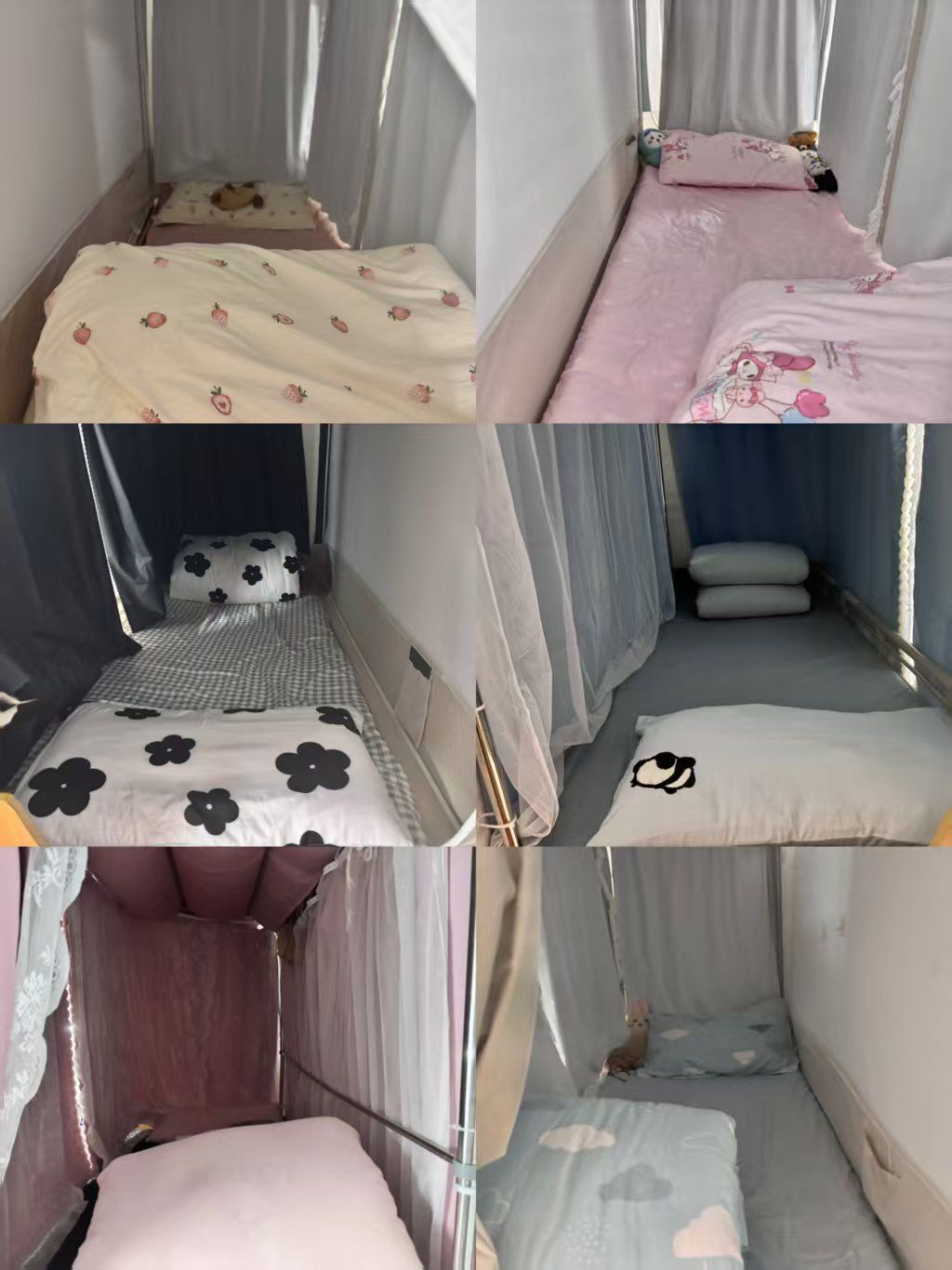 在遵循内务规范的前提下,新生们也将青春创意融入宿舍布置。有的宿舍以清新的床品打造“治愈系”空间,草莓、云朵图案的床单充满活力;有的则用可爱的贴纸、温馨的装饰点缀书桌,让学习角落充满暖意;还有的结合专业特色,在收纳与布置中体现康养学子对生活品质的追求。这些个性化的装扮,既展现了新生们的审美与巧思,也让宿舍成为了充满归属感的“温馨小家”。
