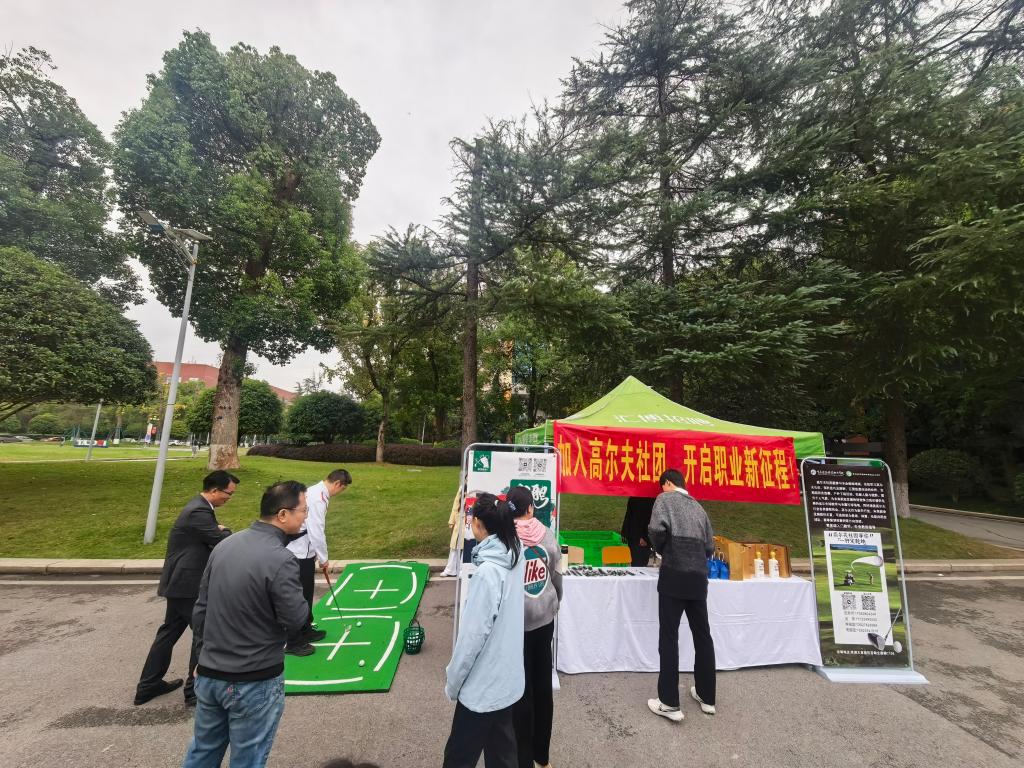 2025年11月11日至12日,在我校运动会热烈进行之际,高尔夫球社于图书馆前顺利举办了社团纳新活动。活动现场气氛活跃,社团成员热情洋溢地向来往师生介绍高尔夫球社的日常活动与社团文化。