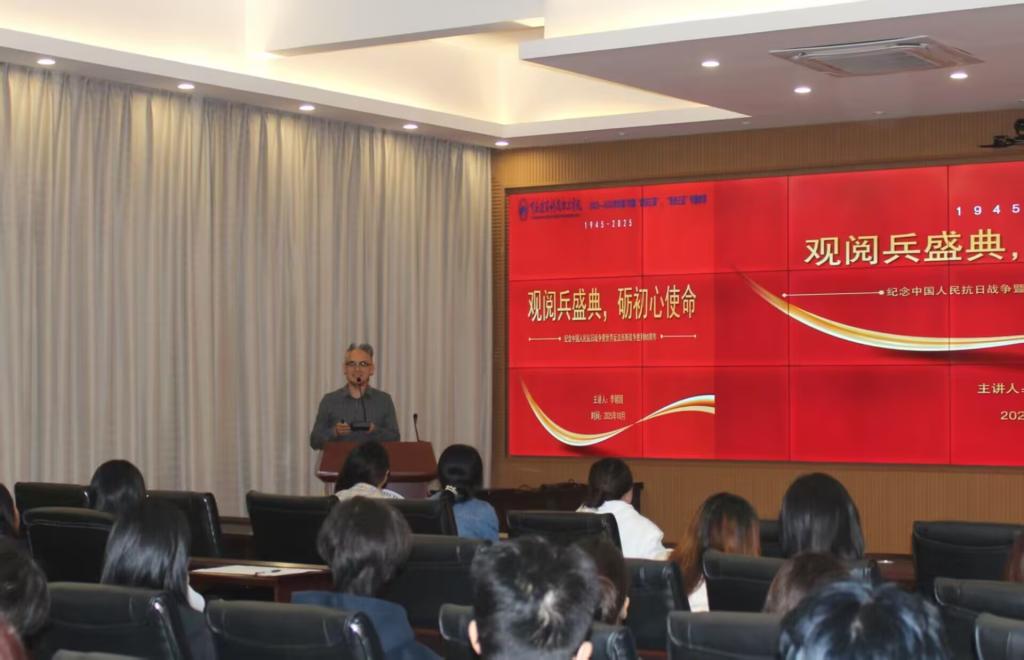 讲座尾声,李朝国副校长指出,此次盛典不仅是对14年浴血抗战历史的深刻铭记,更是对伟大抗战精神的传承与弘扬。现场青年学子深受触动,纷纷表示将以英雄楷模为镜鉴,将个人的理想追求融入民族复兴的伟大事业之中,在科技创新、社会服务等各个领域勇担使命、砥砺前行,用实际行动书写新时代的奋斗华章,为实现中华民族伟大复兴贡献青春力量。