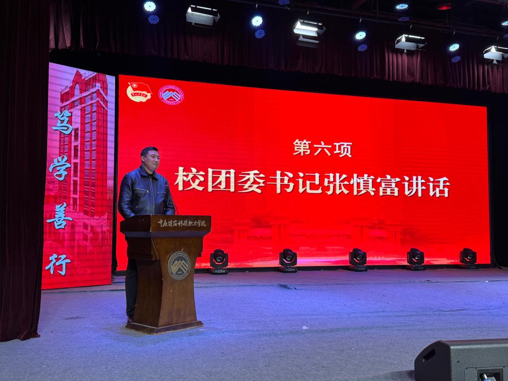 校团委书记张慎富向新团员致以热烈祝贺并寄语。他强调,加入共青团是青年政治生活的重要里程碑,新团员要深刻认识团员身份的政治内涵,牢记共青团作为党的助手和后备军的根本定位。他提出三点要求:一是筑牢政治忠诚,坚定理想信念,深入学习党的创新理论,始终与党中央保持高度一致;二是勤学善思笃行,立足专业深耕细研,夯实理论基础、强化实操能力,对接行业与国家战略需求;三是强化责任担当,主动投身校园治理、志愿服务等实践,在奉献中锤炼品德,展现建科学子良好风貌。