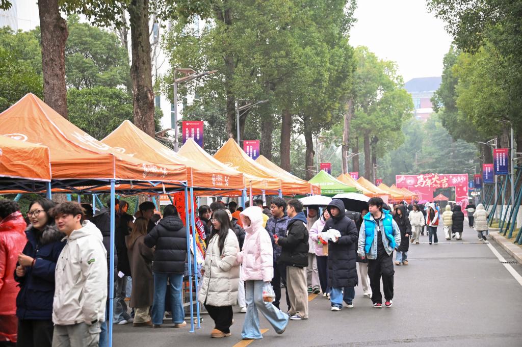 直播赋能,让青春主场成为流量时代的“展示场”。为贴合年轻群体特点,本次活动创新引入网红学生直播带货模式,智慧商贸学院新疆小伙拉木主播团全程直播活动盛况。主播们带着镜头穿梭于各个摊位,详细介绍非遗技艺、专业成果、年货商品,实时互动答疑,邀请学生摊主、企业嘉宾走进直播间分享创作故事与行业见解。“没想到校园年集也能直播!刚才在直播间下单了学生亲手做的烘焙点心,还学到了不少专业小知识。”未能到场的学生通过直播“云逛集”,纷纷留言互动,不仅扩大了活动影响力,更锻炼了学生的新媒体运营、沟通表达能力,让青春主场在流量时代焕发新活力。