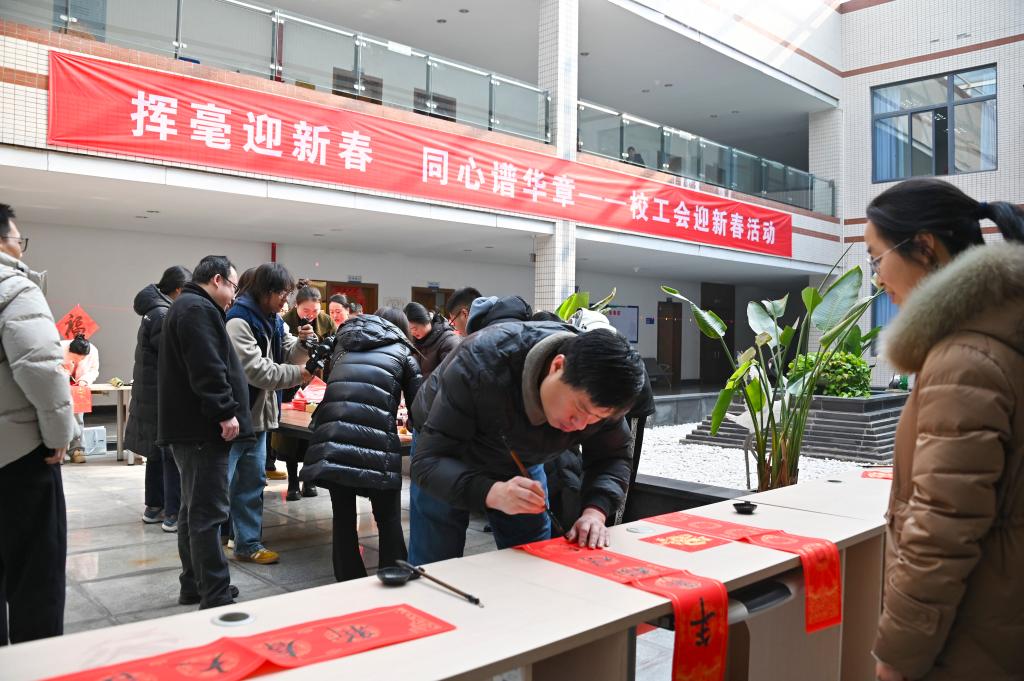 为营造浓厚的节日氛围,弘扬传统文化,传递温情与祝福,1月13日下午,学校工会携手全体教职工在立德楼五楼中厅举办喜迎新春体验活动。教职工们欢聚一堂,通过书写春联、题写“福”字、体验传统拓印等丰富多彩的活动,共同感受中华传统文化的独特魅力。
