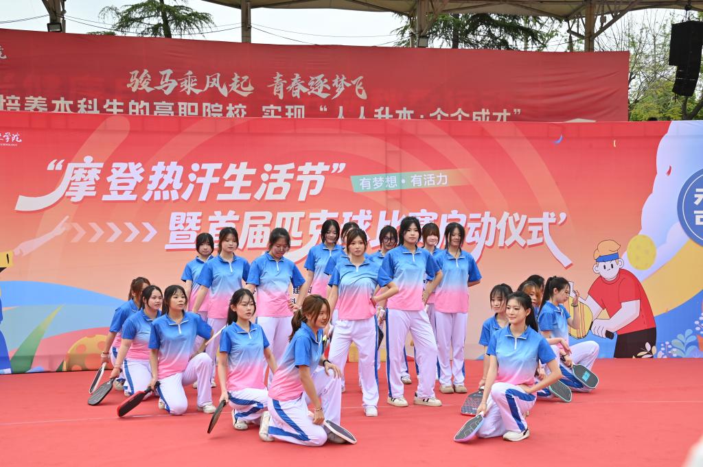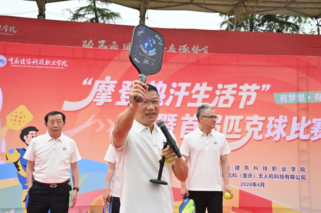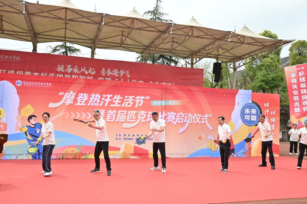 4月15日下午2时,重庆建筑科技职业学院运动场人声鼎沸、活力四射,“摩登热汗生活节”暨首届匹克球比赛启动仪式盛大启幕,以运动为媒、以健康为核,用一场青春盛宴点燃校园,更有带世界冠军签名的匹克球签专属球拍惊艳登场,成为全场最吸睛的焦点,迅速引爆校园。