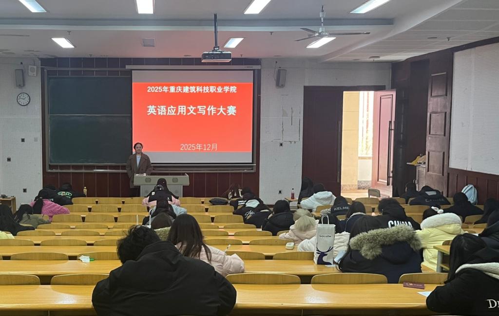 2025年12月10日,重庆建筑科技职业学院英语应用文写作大赛圆满落幕。本次大赛由我院英语课群组主办,以“提升职业英语应用能力,赋能未来职业发展”为主题,吸引全校62名学生踊跃报名参赛。经过激烈角逐,刘洋荷、罗昊、孙帅鸣三名同学脱颖而出,将代表学校出征2026年“中国教育电视台·外研社杯”重庆市职场英语挑战赛写作大赛,与全市高职院校优秀学子同台竞技。