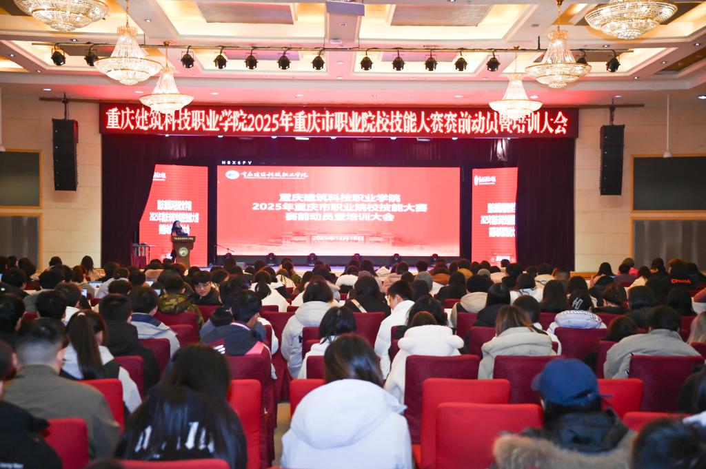 会场座无虚席,师生精神饱满,全力投入备赛。参赛号角已经吹响,期待我校团队在2025年重庆市职业院校技能大赛的舞台上大放异彩,凯旋而归。