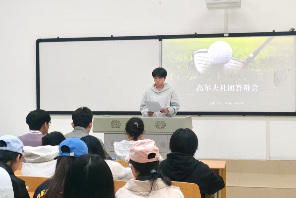 2025年10月29日中午,我校高尔夫球社团成立答辩会在笃学楼5103教室顺利举行。此次答辩会标志着高尔夫球运动正式走进校园,为丰富学生课余生活、拓展体育文化内涵注入了新的活力。