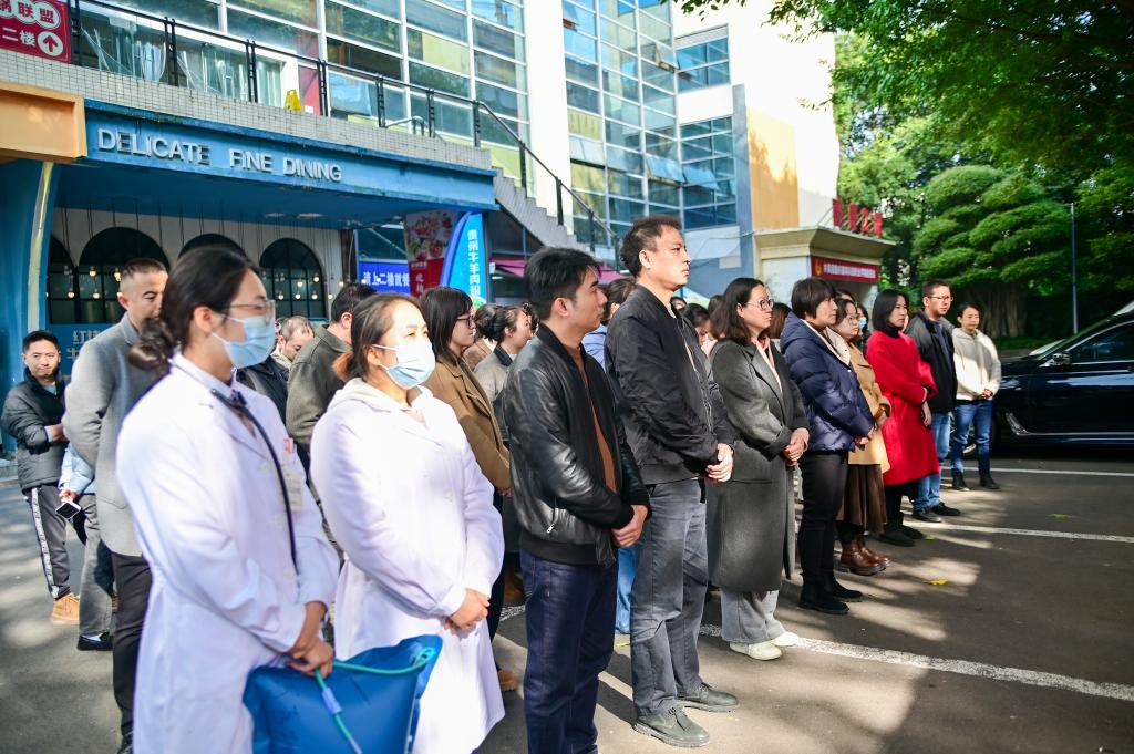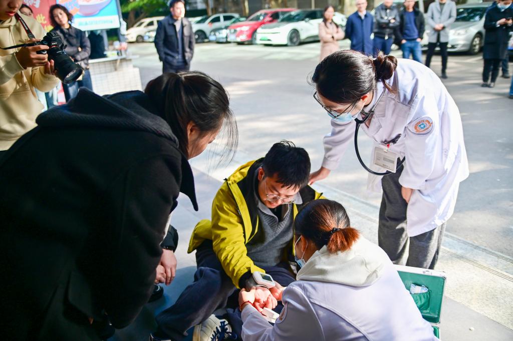 经过约十分钟的紧急处置,学生症状得到初步控制。校医继续密切观察学生情况,并进行必要的后续检查,同时准备好向抵达的120急救人员交接病情。此时,急促的警报声由远及近,120急救车准时抵达现场。辅导员田振老师也已到达,协助维持秩序并与校医、急救人员快速沟通。在现场师生及校医的共同协助下,患病学生被稳妥、迅速地转移至救护车内,由急救车转运至指定医院进行进一步检查与治疗。演练过程中,信息传递畅通,指令执行到位,各部门配合默契,达到了预期效果。