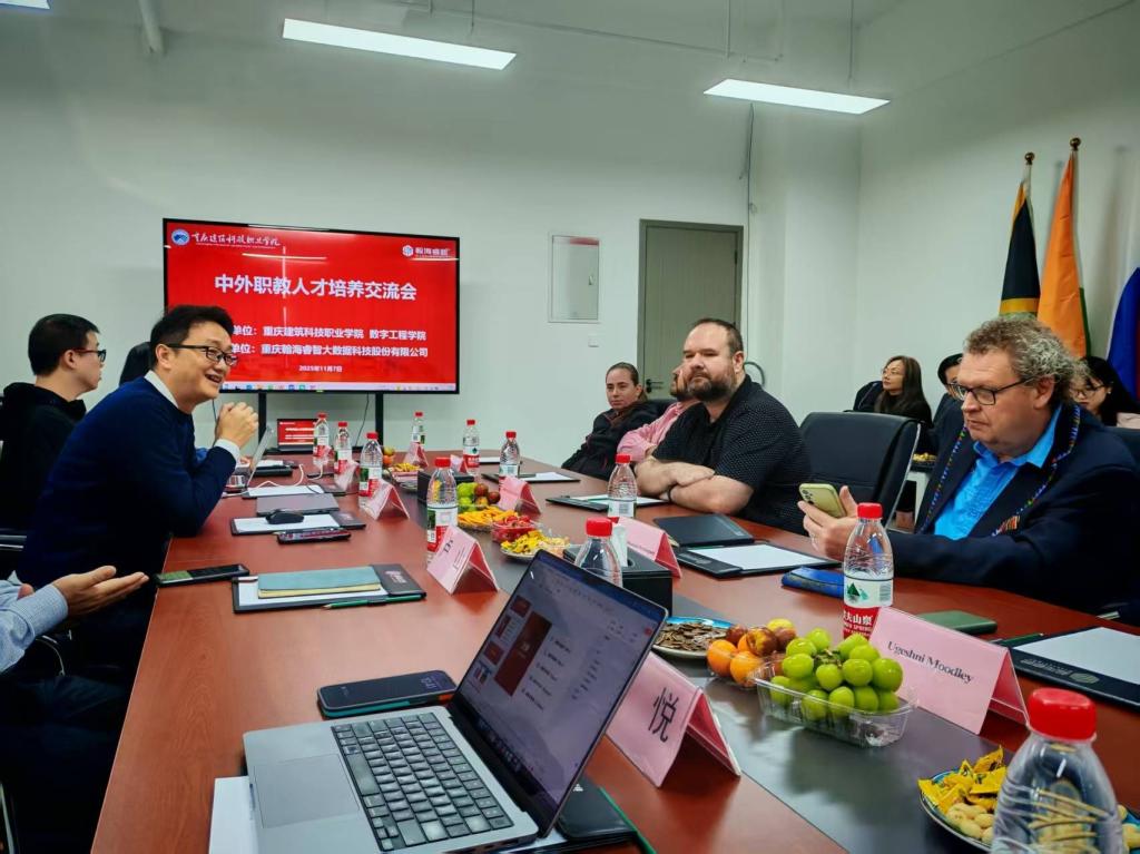 会上,数字工程学院院长孙二华介绍了重庆建筑科技职业学院及数字工程学院的发展历程、办学特色、专业建设成果以及在推动产教融合、国际化办学方面的积极探索。南非德班理工大学与比利时学院代表分别分享了各自院校的办学理念、专业设置、人才培养模式及国际合作经验。与会代表一致认为,当前全球职业教育既面临重大发展机遇,也需应对诸多共同挑战。各方就如何相互借鉴优势、融合不同教育体系精华进行了热烈而富有建设性的讨论,展现出强烈的合作意愿。