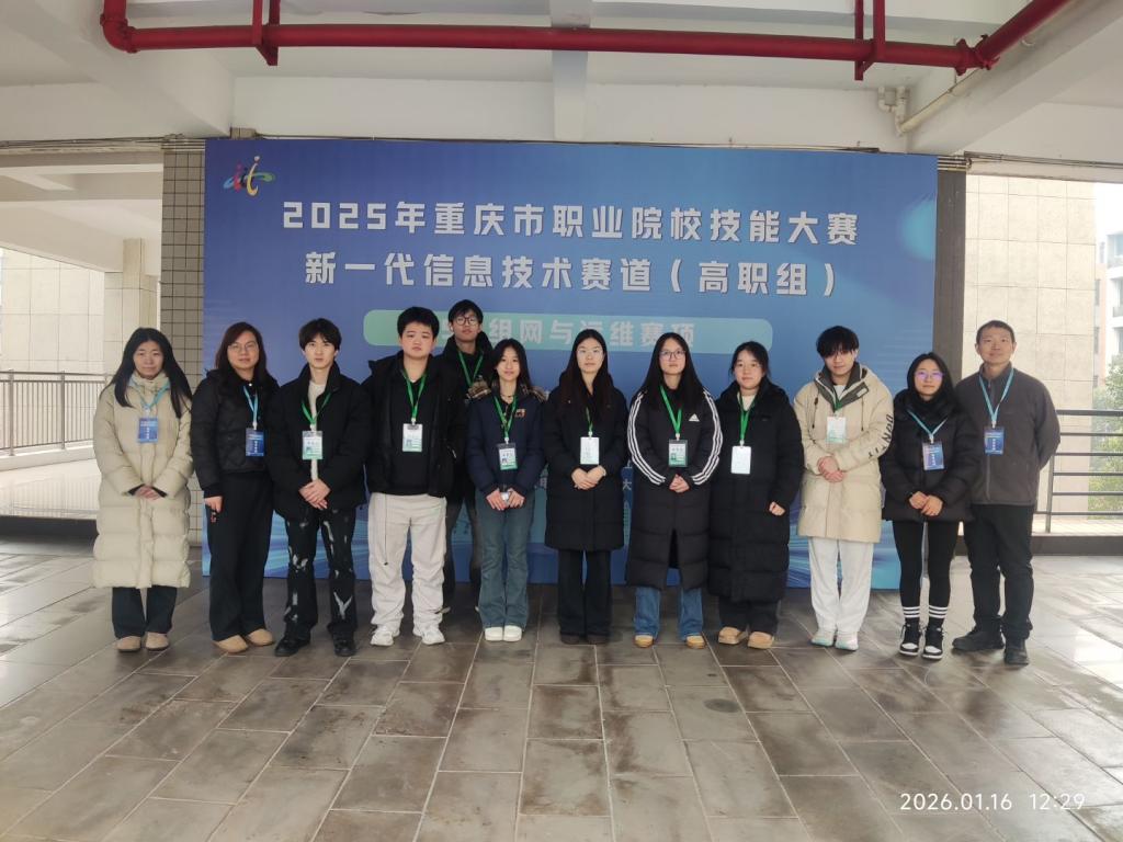 近日,2025年重庆市职业院校技能大赛新一代信息技术赛道高职组“5G组网与运维”赛项圆满落幕。我校云计算技术应用专业学生团队凭借其扎实的云平台架构设计能力、精湛的运维实操技能和卓越的协同创新精神,在强手如林的激烈竞争中脱颖而出,最终荣获该赛项银奖。这一优异成绩,是我校主动对接国家数字经济战略、深化新一代信息技术领域专业建设与教学改革的又一重要成果。