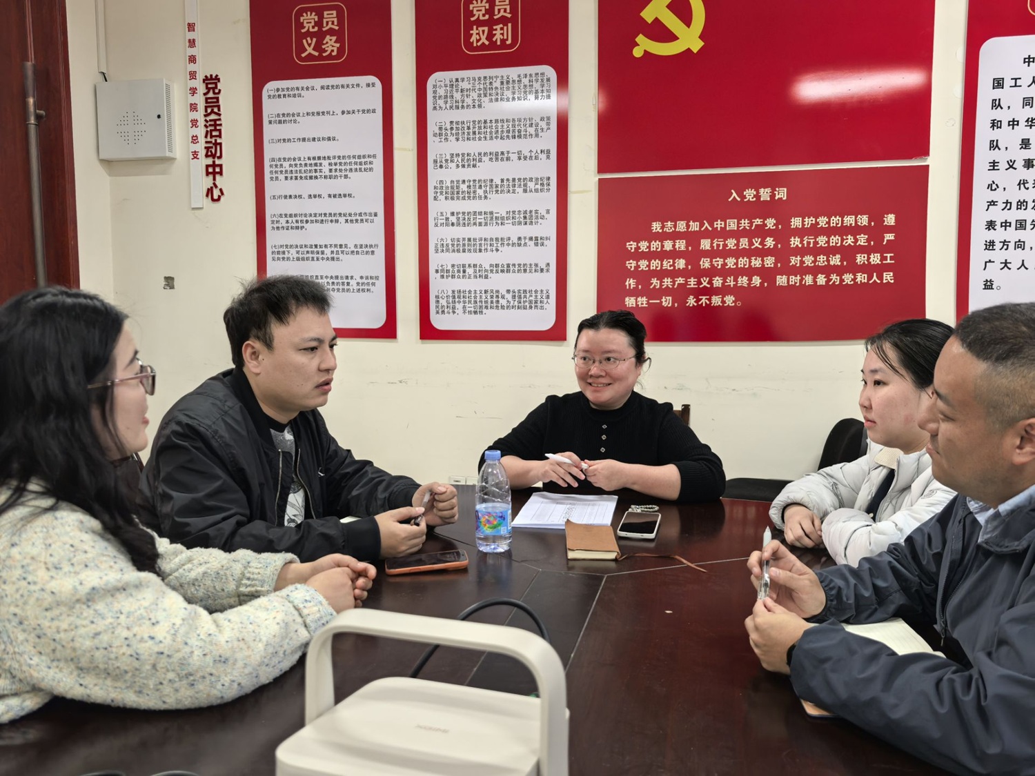 2026年3月18日,智慧商贸学院教师党支部召开支委会议,专题学习习近平总书记系列重要讲话精神。支部委员集体学习了《习近平:让愿担当、敢担当、善担当蔚然成风》《习近平:当前经济工作的重点任务》等重要文章,以及习近平总书记在2026年春节团拜会、省部级主要领导干部学习贯彻党的二十届四中全会精神专题研讨班开班式、二十届中央纪委五次全会上的重要讲话,深入领会习近平总书记对国家自然科学基金委员会工作的重要指示和关于未来产业发展、科技创新故事的重要论述。