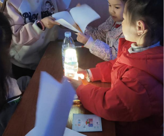 活动开始前,志愿者们提前准备好了维生素B2、彩色粉笔、瓶子等材料。来自智慧康养学院婴幼儿托育专业的朱煜小姐姐为小朋友们讲解了“水中流星雨”科学小实验。孩子们兴致勃勃,踊跃举手回答关于流星雨的问题,纷纷分享自己所了解的相关知识。在动手操作环节,小朋友们在志愿者们指导下,按照实验步骤,先用维生素B2制作出“黄色流星雨”,随后又利用彩色粉笔调配出自己喜欢的流星雨色彩。家长们也一同参与,共同见证实验过程,现场气氛温馨融洽。