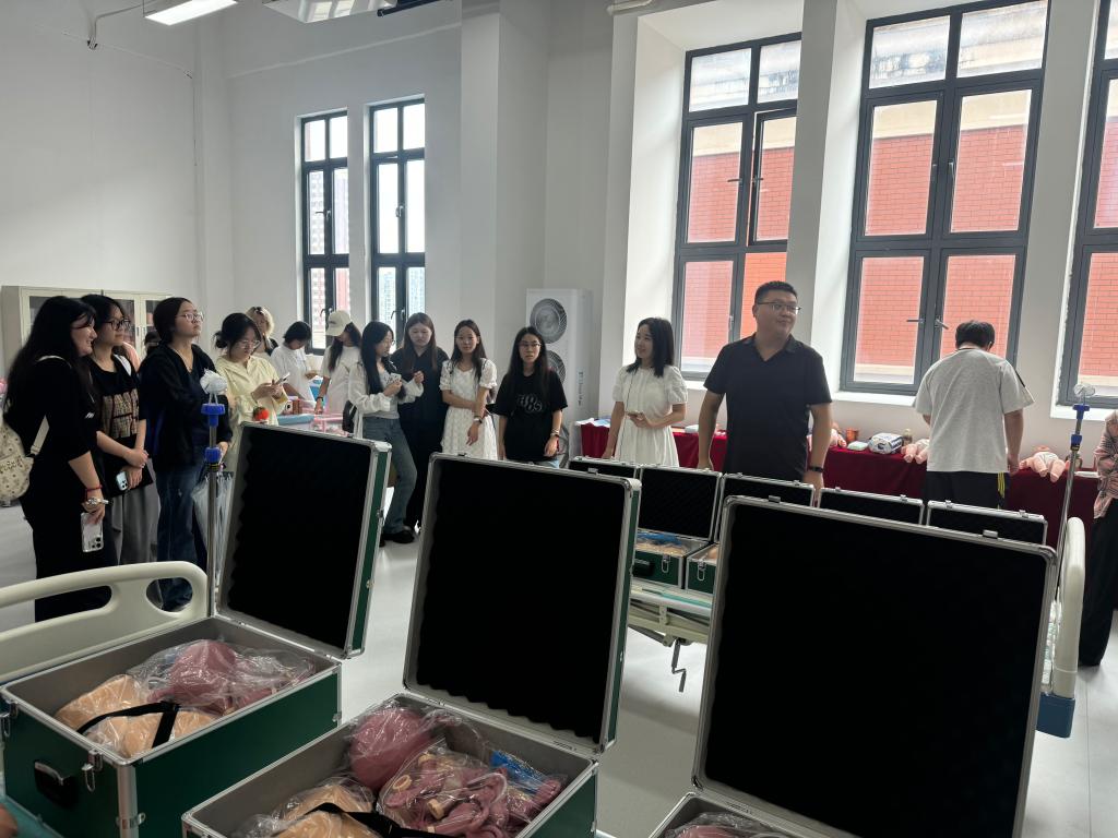 在专业教师的带领下,同学们依次走进我校智慧康养学院实践中心基础护理、内科、外科、模拟手术室、重症监护室等十余个专业化实训空间。各实训室教师现场讲解设备功能、演示操作流程,生动展示社区康复的专业内涵与技术前沿。不少同学第一次见到高仿真模拟人和智能康复设备,表现出浓厚兴趣,纷纷驻足观看、踊跃提问。