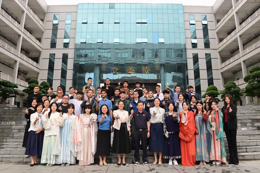 仪式结束后,全体领导、教师与留学生在立德楼阶梯前合影留念,记录下这一庄重而温馨的时刻。