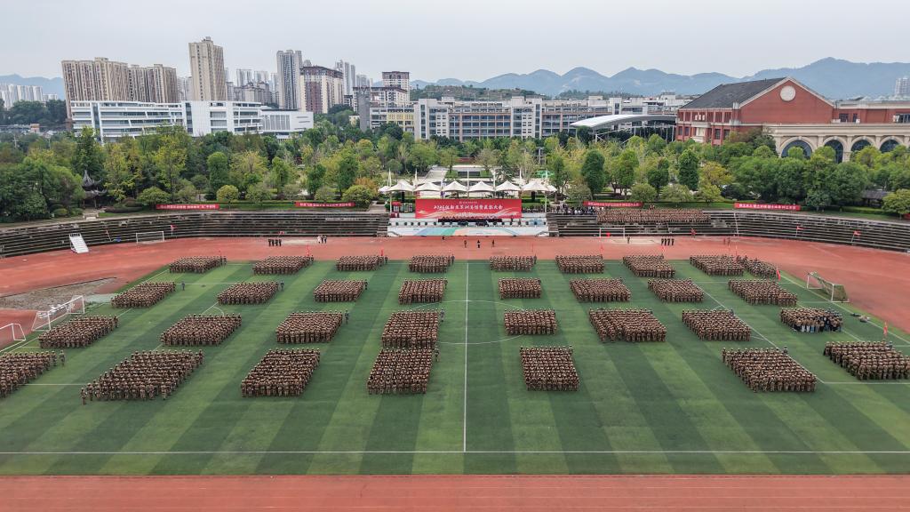 千锤百炼锻铁骨,汗水浇铸栋梁材。2025年10月24日,学校在田径运动场隆重举行2025级新生军训工作总结暨表彰大会。沙坪坝区人民武装部党委委员、中校军官、军训团团长贺伟,我校党委书记何光明,校长张进,其他校领导及各二级学院、职能处室主要负责人参加大会。大会由副校长李朝国主持。