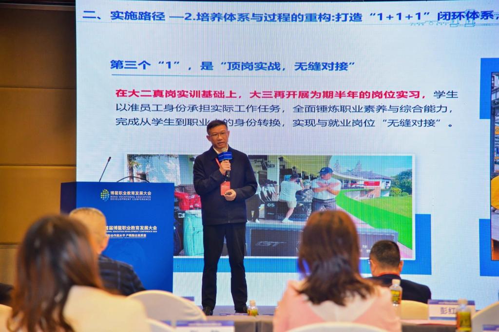 张校长分享,“三真浸润·双向赋能”模式的推行,让学校在人才培养质量上显著提升,在服务产业发展能力上切实增强,在改革模式的示范效应上逐步显现。他表示,学校将以此次大会为重要契机,持之以恒地探索产教融合新模式、新路径。携手全国高职院校,凝聚广泛共识、形成强大合力,齐心协力为推动中国职业教育实现高质量发展贡献智慧与磅礴力量!
