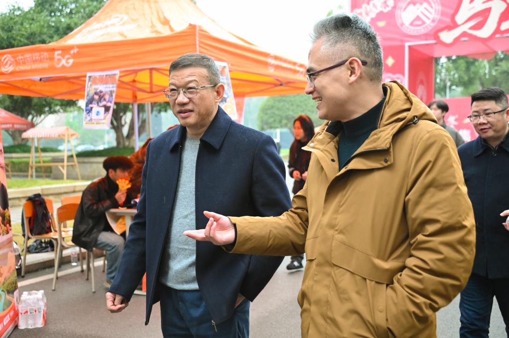 校领导到集市现场与同学们交流
