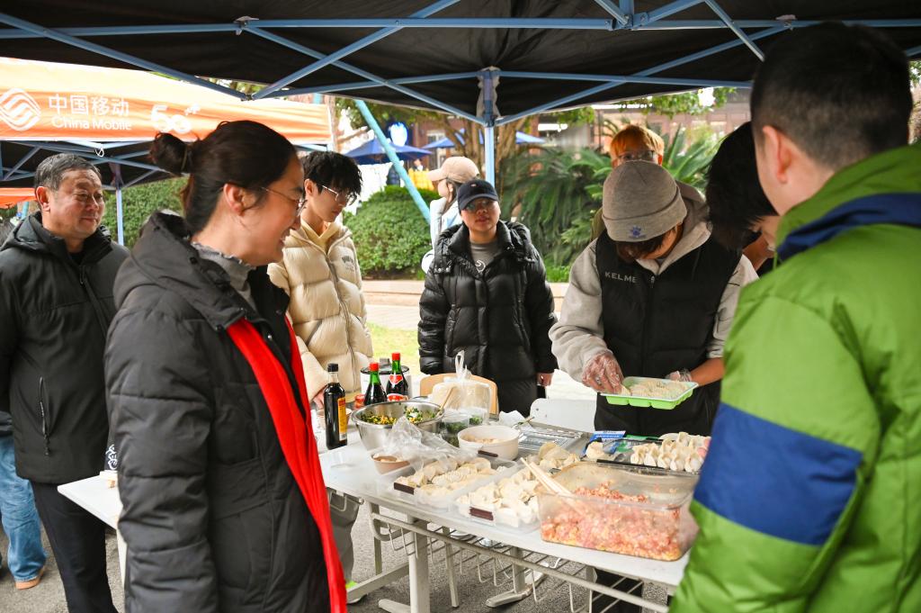 王靖副校长前往手工饺子摊体验