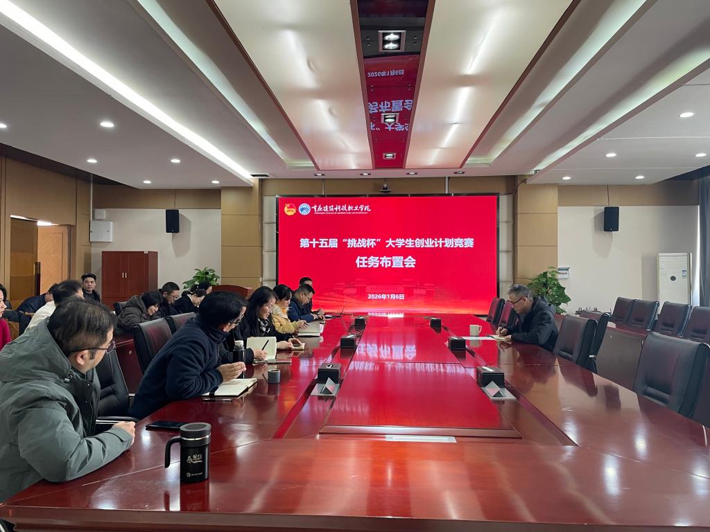 为深入推进第十五届“挑战杯”大学生创业计划竞赛筹备工作,明确赛事要求、细化任务分工、凝聚工作合力,2026年1月6日下午,重庆建筑科技职业学院在立德楼六楼会议室召开赛事任务布置会。校党委副书记、副校长李朝国出席会议并提出工作要求,党委学生工作部部长冉小平、科技信息处处长周小茜、校团委书记张慎富及各二级学院党总支(支部)书记、院长、团总支书记参加会议。