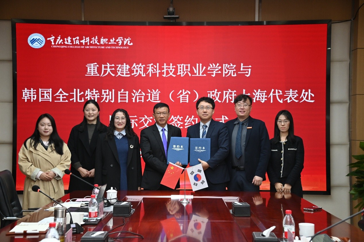 随后,在双方领导与嘉宾的共同见证下,重庆建筑科技职业学院与韩国全北特别自治道(省)政府上海代表处正式签订国际交流合作MOU,标志着双方的合作迈入实质性阶段。
