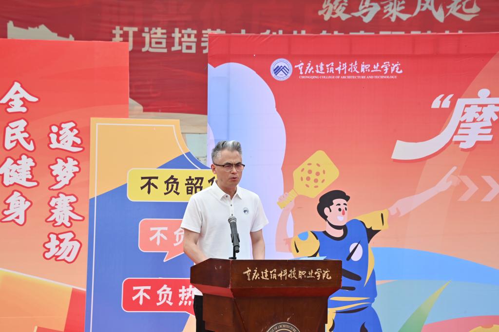 4月15日下午2时,重庆建筑科技职业学院运动场人声鼎沸、活力四射,“摩登热汗生活节”暨首届匹克球比赛启动仪式盛大启幕,以运动为媒、以健康为核,用一场青春盛宴点燃校园,更有带世界冠军签名的匹克球签专属球拍惊艳登场,成为全场最吸睛的焦点,迅速引爆校园。
