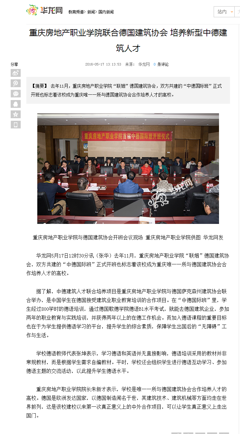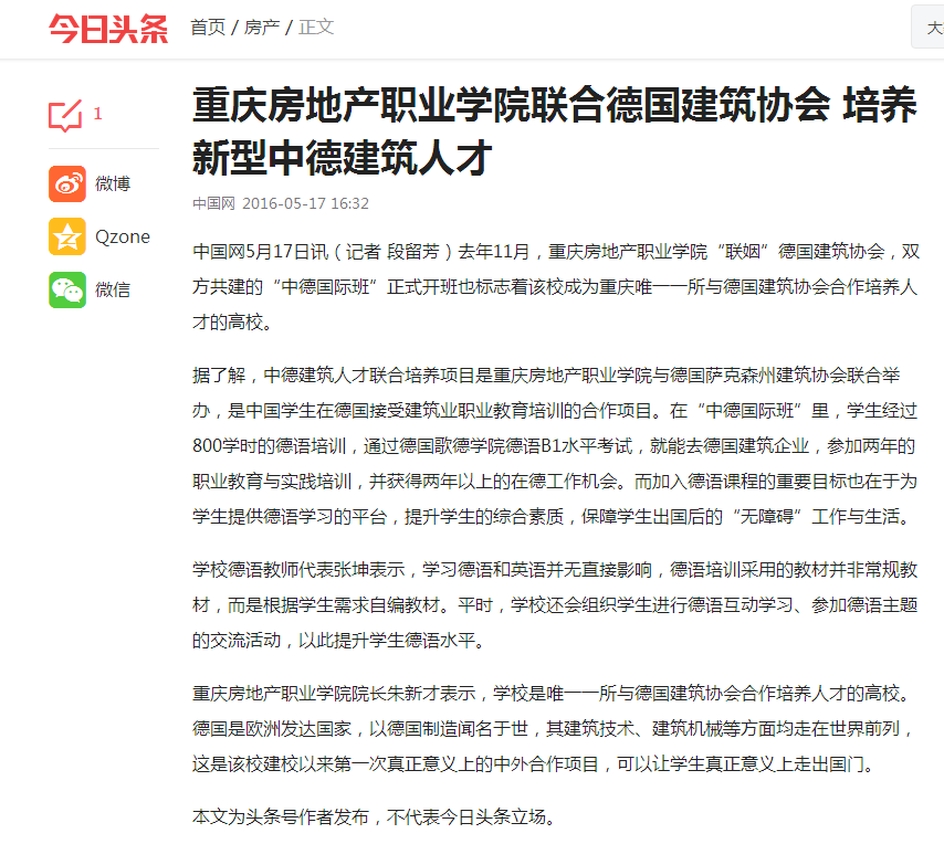 多家媒体报道我校联合德国建筑协会 培养新型中德建筑