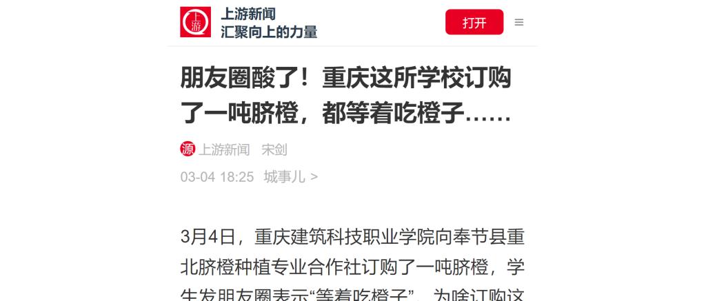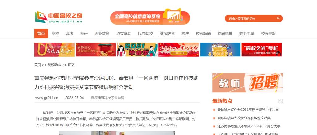 中国新闻网等多家媒体报道我校参与沙坪坝区、奉节县“一区两群”对口协作科技助力乡村振兴暨消费扶贫奉节脐橙展销推介活动