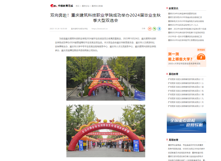 【中国教育在线】双向奔赴!重庆建筑科技职业学院成功举办2024届毕业生秋季大型双选会