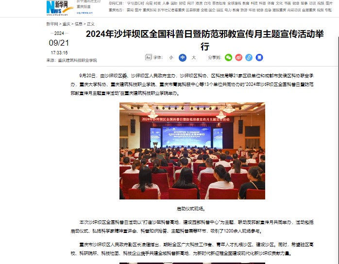 【新华网】2024年沙坪坝区全国科普日暨防范邪教宣传月主题宣传活动举行