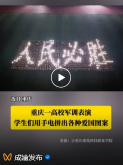 【成渝发布】重庆建筑科技职业学院军训表演,学生们用手电拼出各种爱国图案