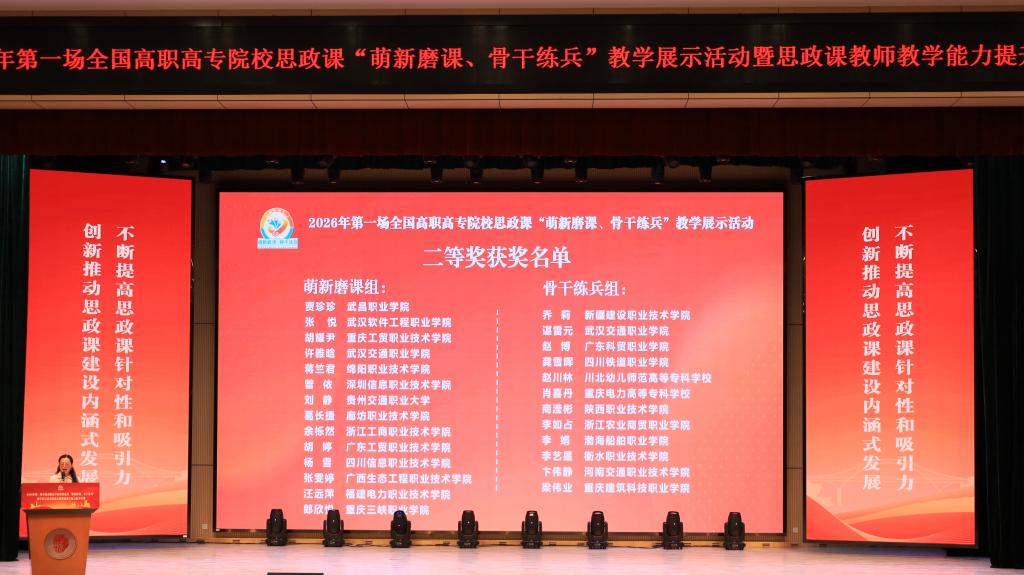 4月11日,由全国高职高专院校思想政治理论课建设联盟主办的2026年第一场全国高职高专院校思想政治理论课“萌新磨课、骨干练兵”教学展示活动暨思政课教师教学能力提升培训在重庆城市管理职业学院圆满落幕。本次活动吸引了全国23个省、直辖市300余名高职高专院校思政课教师观摩、学习。