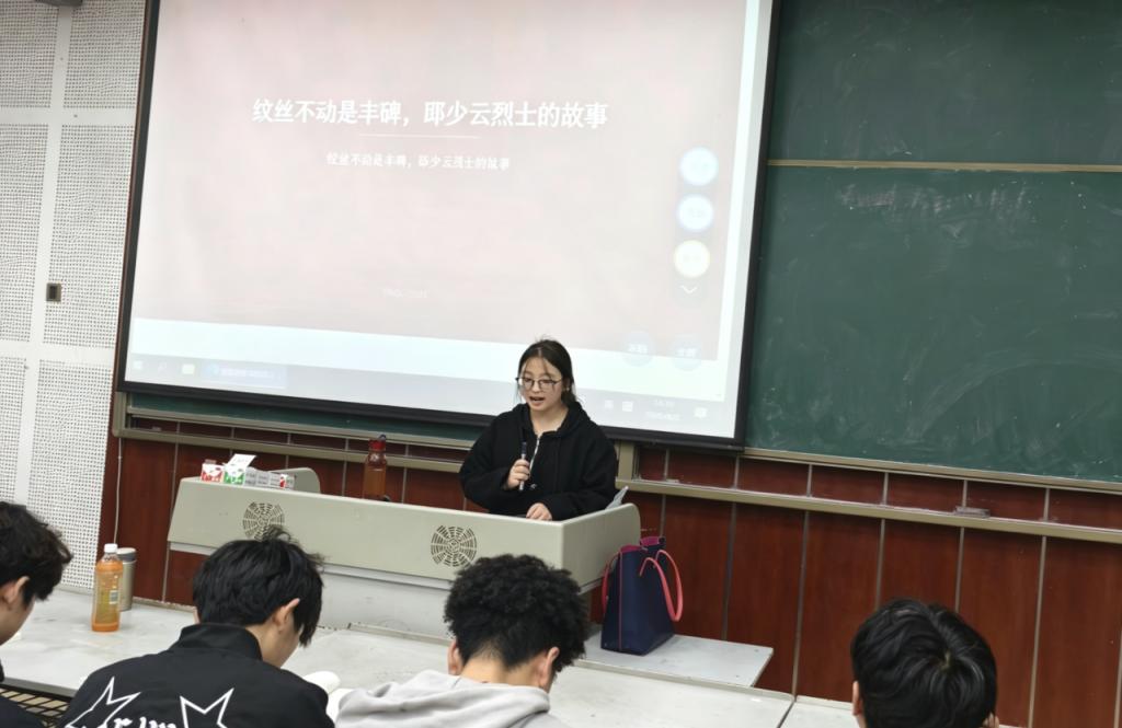 “同学们,上甘岭战场上,志愿军战士在缺水缺粮的坑道里坚守43天,是什么让他们宁死不退?是祖国在他们心中的分量。”近日,在《毛泽东思想和中国特色社会主义理论体系概论》课堂上,一场以“讲好红色故事,赓续红色血脉”为主题的学生宣讲活动正在热烈进行。讲台上的同学动情地讲述着上甘岭战役中的英雄事迹,台下同学凝神聆听,不少人为之动容。