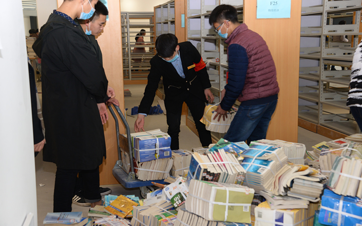 12月27日下午,为切实配合学校升本工作,我校党员服务站与纪检服务队共三十余人在党委组织部向鑫老师和纪检室姜勇老师的带领下到图书馆参与图书整理志愿服务活动。