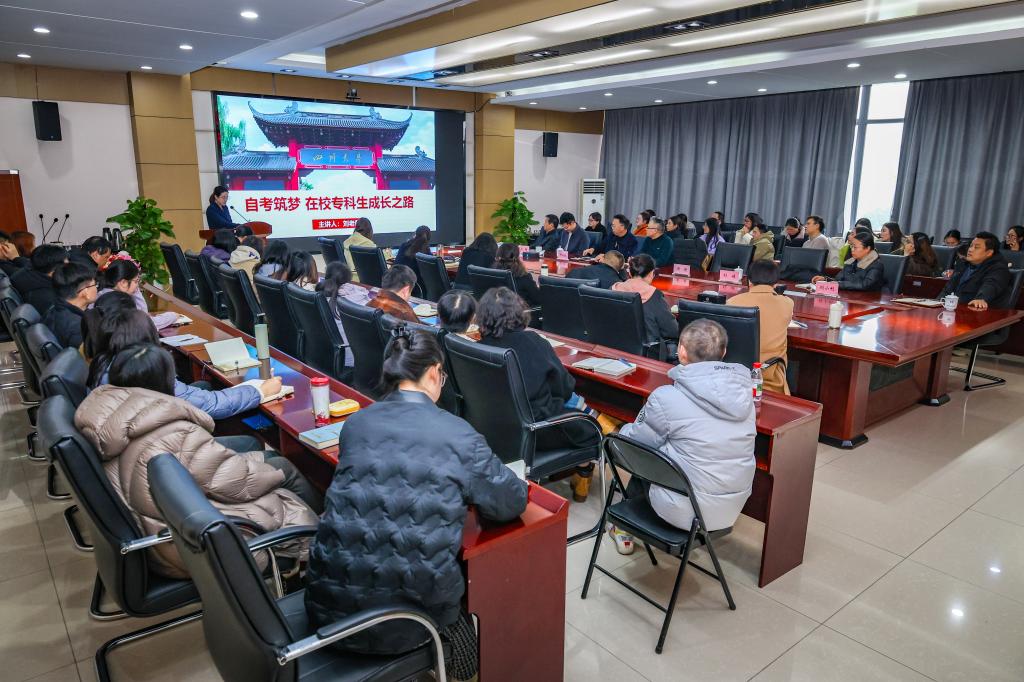 会上,各位专家和领导凭借深厚的专业积淀与丰富的实践经验,为参会人员带来了精彩纷呈的工作培训。校长助理周旖从宏观与微观相结合的独特视角,深入剖析了深化产教融合育人模式的重要意义。她指出,产教融合是高等职业教育适应社会经济发展需求、培养高素质应用型人才的关键路径。重庆文理学院机关党委副书记白成良将目光聚焦于学历提升领域,围绕“为什么要读本科?为什么要选择自考本科?”这两个核心问题展开深入探讨。他强调,在知识经济时代,学历是个人职业发展的重要敲门砖,自考本科为广大学生提供了提升自我、拓宽职业发展空间的优质途径。四川大学专家刘娟则围绕“怎么学?怎么考?”进行了专业指导。校外专家闻路进一步拓展了学历提升的话题,全面介绍了多种学历提升路径,他详细解读了每种路径的报考条件、学习方式和优势特点。智慧商贸学院教师代表何一鹭从认知、态度、行动三个层面分享了学生工作心得。学工部部长冉小平对学校近期的学生工作重点任务进行了详细部署与解读。她强调,学生工作要牢记“为党育人、为国育才”的初心使命,始终以学生发展为核心,以学校发展为己任,以个人成长为支撑。