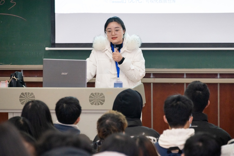 为推动企业深度参与职业教育专业规划,推进校企双方实现优势互补、资源共享,进一步深度融合,达成共同培养人才目标。2022年2月22日,数字工程学院(Cloudera大数据学院)翰海睿智产教融合校区在重庆建筑科技职业学院笃学楼2305教室开展《筑梦大数据·跨入数据化新时代》主题讲座。21级大数据技术专业161名学生参加了此次讲座,讲座由重庆翰海睿智大数据科技股份有限公司方小婷老师主讲。