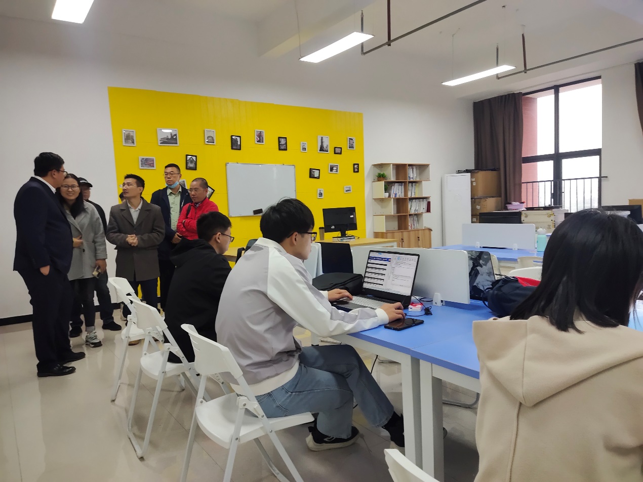 考察期间,数字工程学院孙二华副院长首先带领考察交流人员先后考察参观我校的VR虚拟现实实训中心、大数据学院实训中心、大数据的“数据工厂”校内实训基地等,同时从“教育学生、孵化学生,服务学生”向大家介绍数字工程学院专业教育理念及后期发展规划。中国航天科工集团第三研究院第三〇四研究所重庆办事处主任孟凡杰、李晶晶等考察人员对我校实训基地、教育理念及发展规划给予高度评价。
