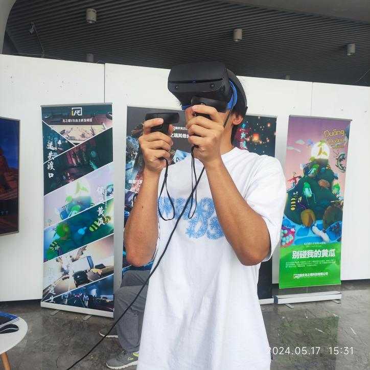 本次教育活动分为两个部分。第一部分为介绍VR技术及其应用场景。通过对虚拟现实技术专业理论知识、技术原理、操作方式进行讲解,结合往届竞赛内容、VR技术应用场景等介绍,让同学们对VR技术及其应用有了初步的了解。第二部分,结合理论知识,进行实际的VR交互体验,在VR实际案例中体验VR技术及其应用相关内容。在老师的指导下,学生讲解员辅助同学们戴上VR设备,在虚拟现实VR交互案例中,完成沉浸式的VR交互体验和技术操作,活动过程中学生参与度高、沉浸感强,学习体验深刻。