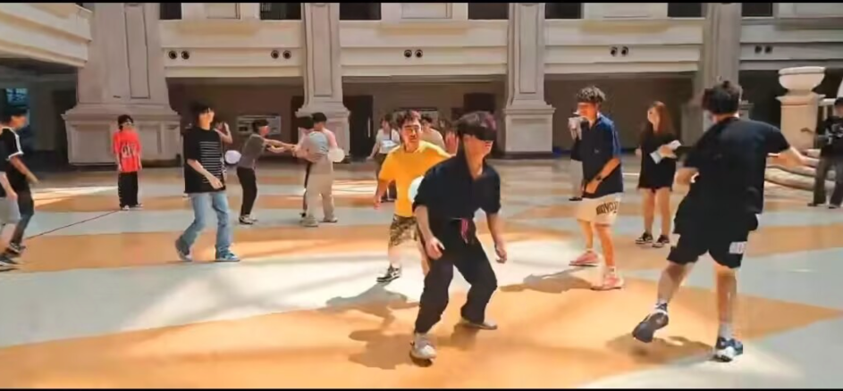 “盲人摸象” 环节作为破冰项目率先登场。蒙眼的同学们需通过触摸和沟通,猜出班级同学的身份,在欢笑与摸索中迅速拉近彼此距离。随后的 “背气球接力赛” 则将气氛推向高潮,两人一组背对背夹气球冲刺,既要保持平衡,又要与下一组无缝交接,一次次气球的破裂声与加油呐喊声交织,让陌生感荡然无存。