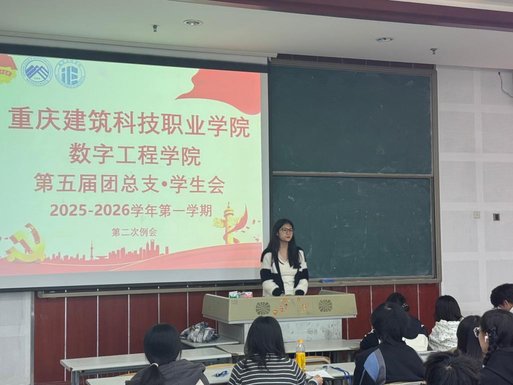 为进一步规范学生会工作流程,凝聚团队力量,明确近期重点任务,2025年10月28日,重庆建筑科技职业学院数字工程学院第五届团总支·学生会第二次例会在教室3405如期举行。会议由学生会主席团成员何浩均主持,团总支·学生会全体成员参会,共同为学院学生工作高质量推进建言献策。