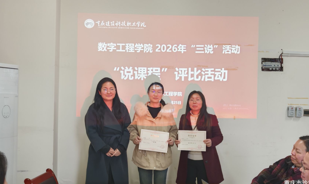 为深入落实学校办学能力评估工作要求,扎实推进专业群、专业与课程建设提质升级,选拔优质项目参与校级 “说专业群、说专业、说课程” 教学能力大赛,重庆建筑科技职业学院数字工程学院统筹组织开展 “三说” 系列院级评比活动,以赛促教、以赛促建、以赛促研,全专业、全核心课程覆盖,进一步凝聚专业建设共识,明晰发展思路,夯实人才培养根基。