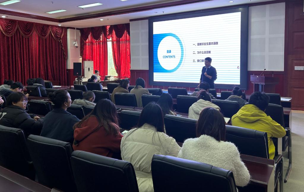 为深入应对数智时代下的就业新挑战,切实提升对困难毕业生的帮扶实效,11月28日上午,学校招生就业处与数字艺术学院联合主办的就业指导专题讲座在笃学楼4305教室成功举行。本次讲座特邀四川外国语大学俄语学院团总支书记张珂担任主讲,聚焦“数智时代背景下如何针对困难毕业生开展就业精准帮扶”这一核心议题,为现场辅导员带来了一场富有洞察力与实操性的精彩分享。